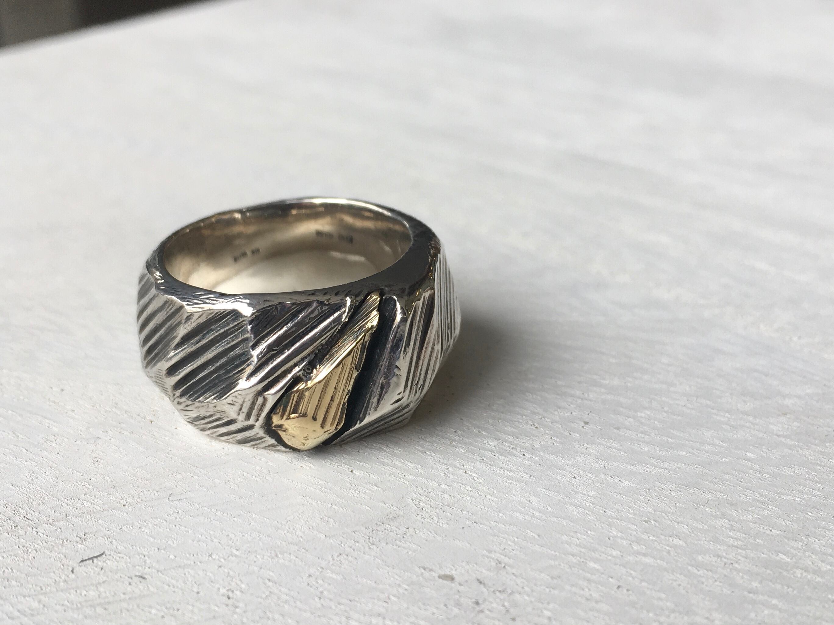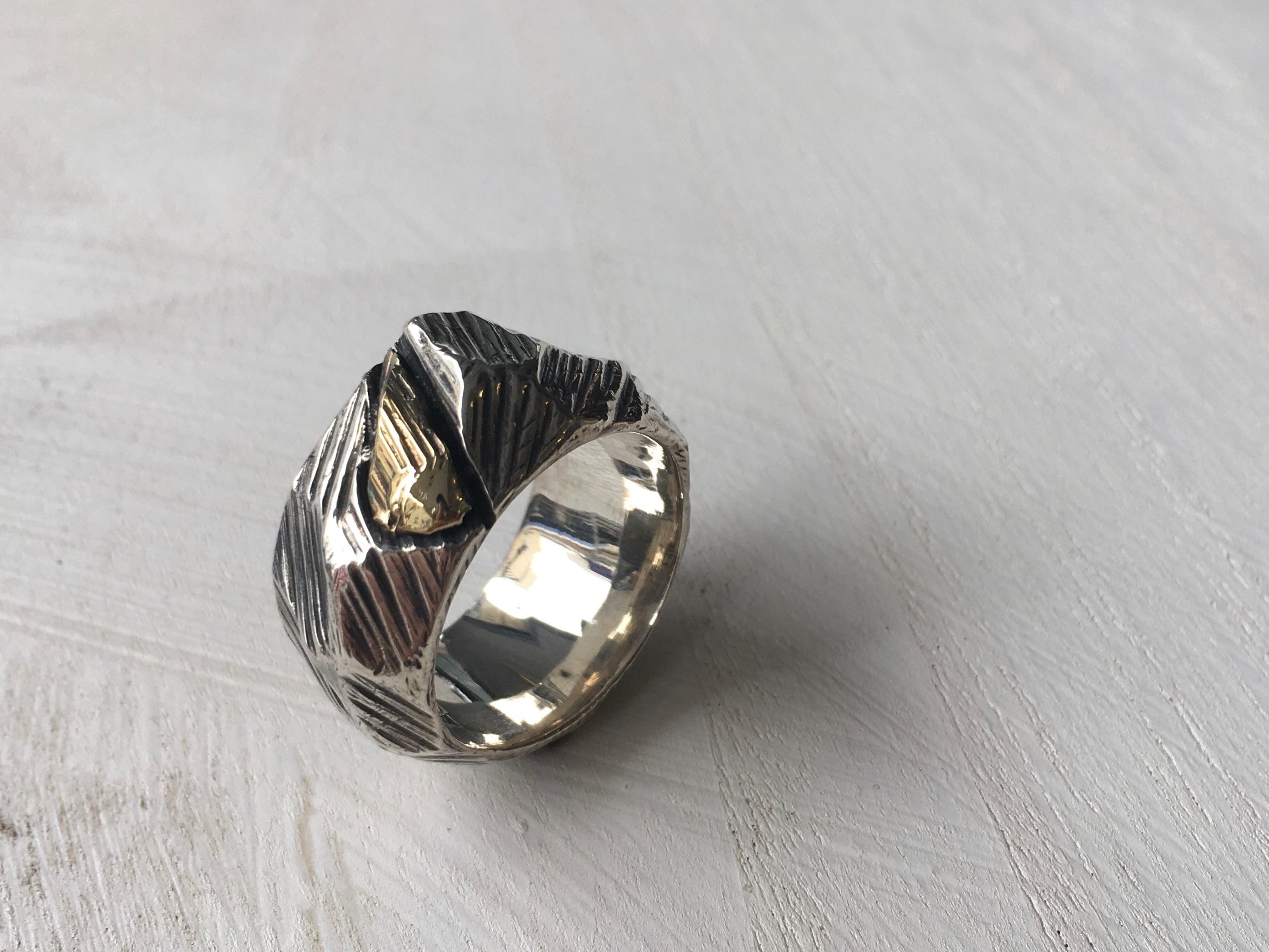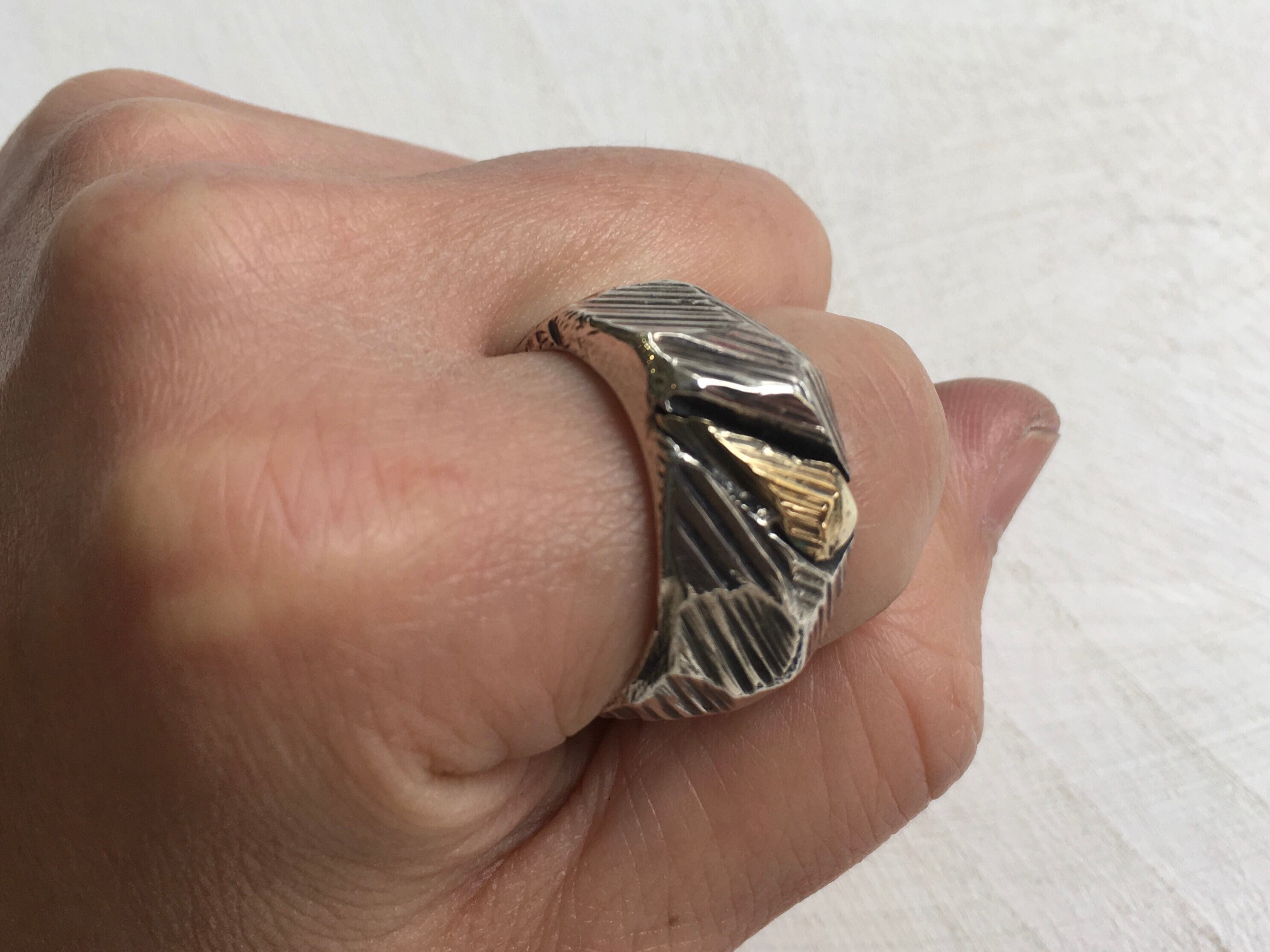 銀×金 荒々しい一点物リング