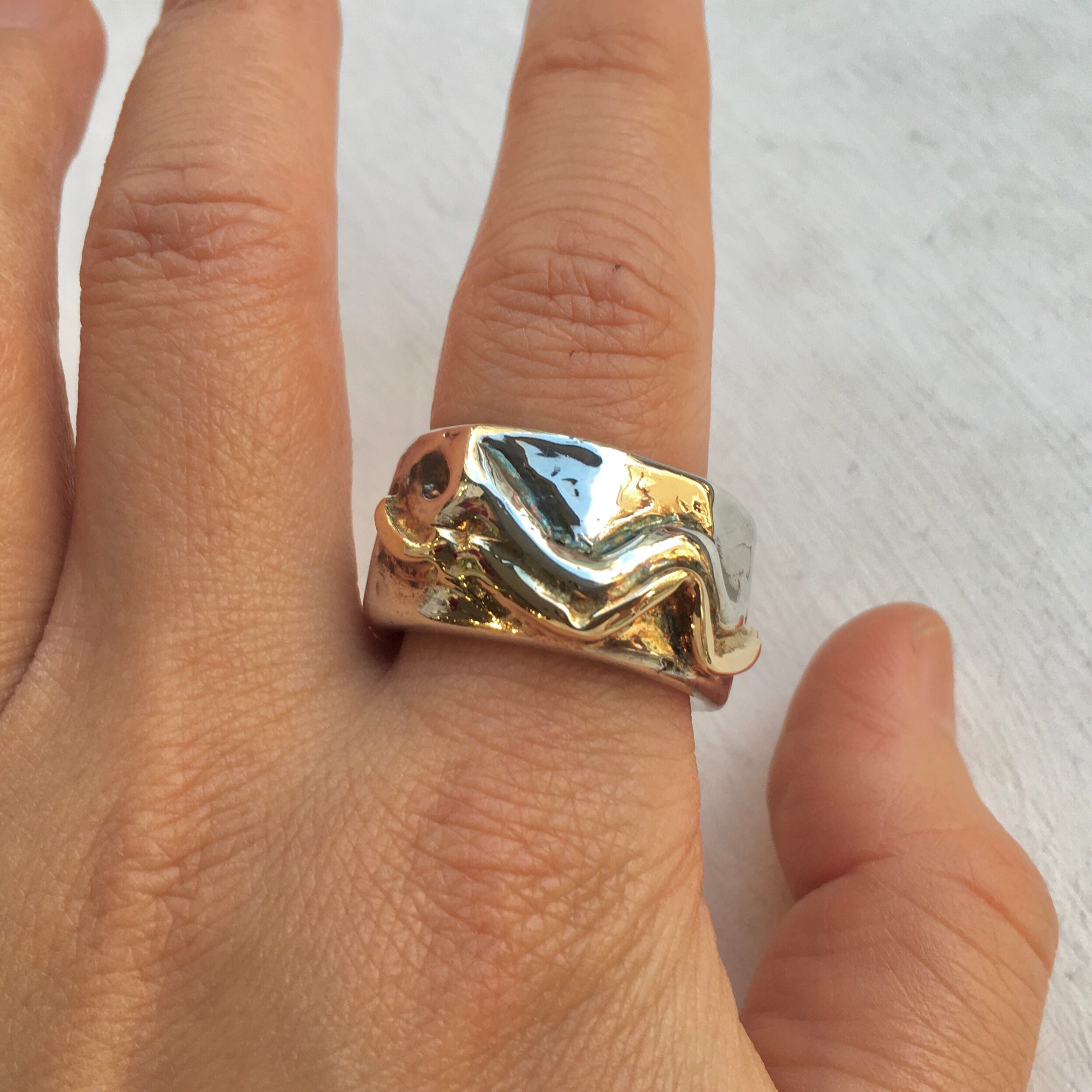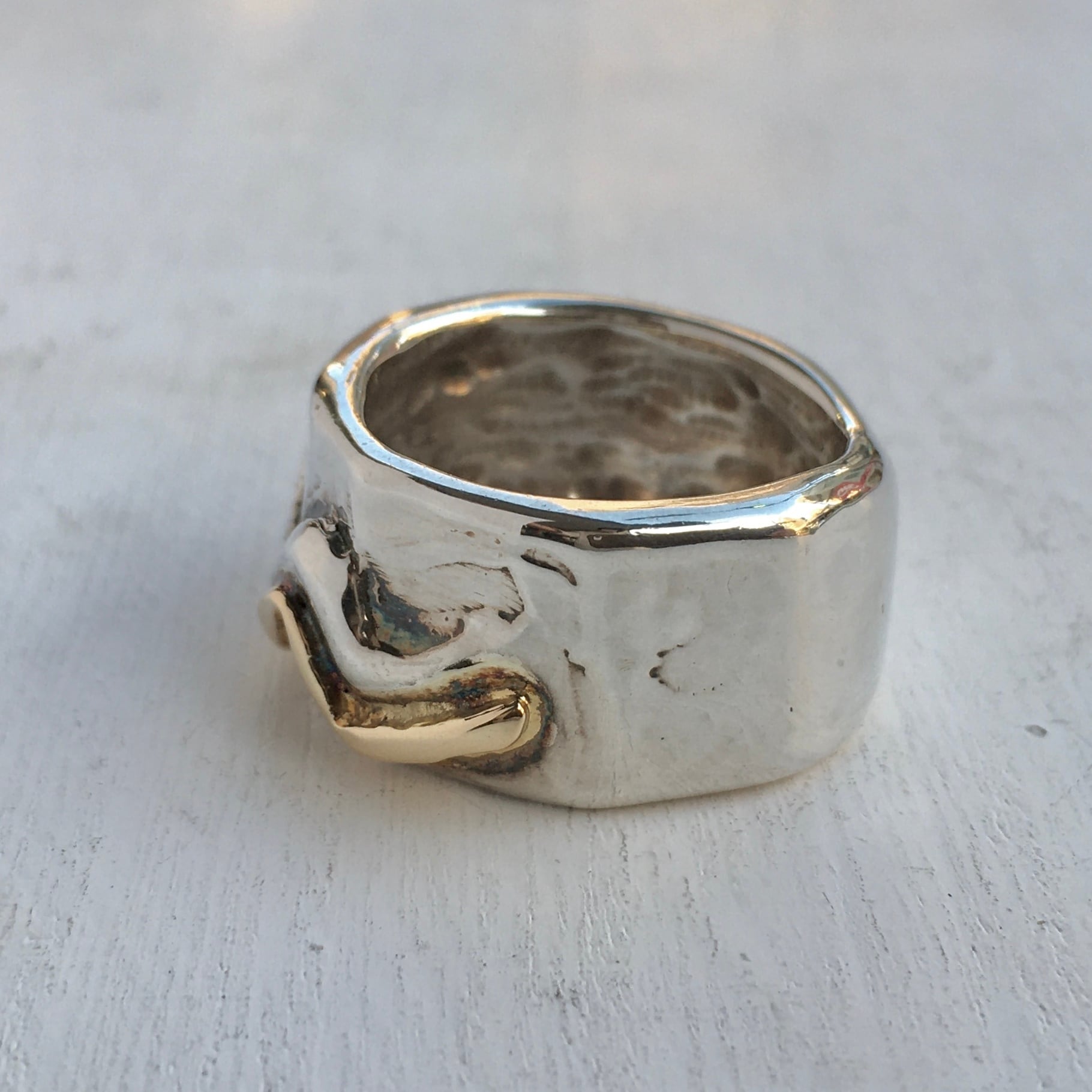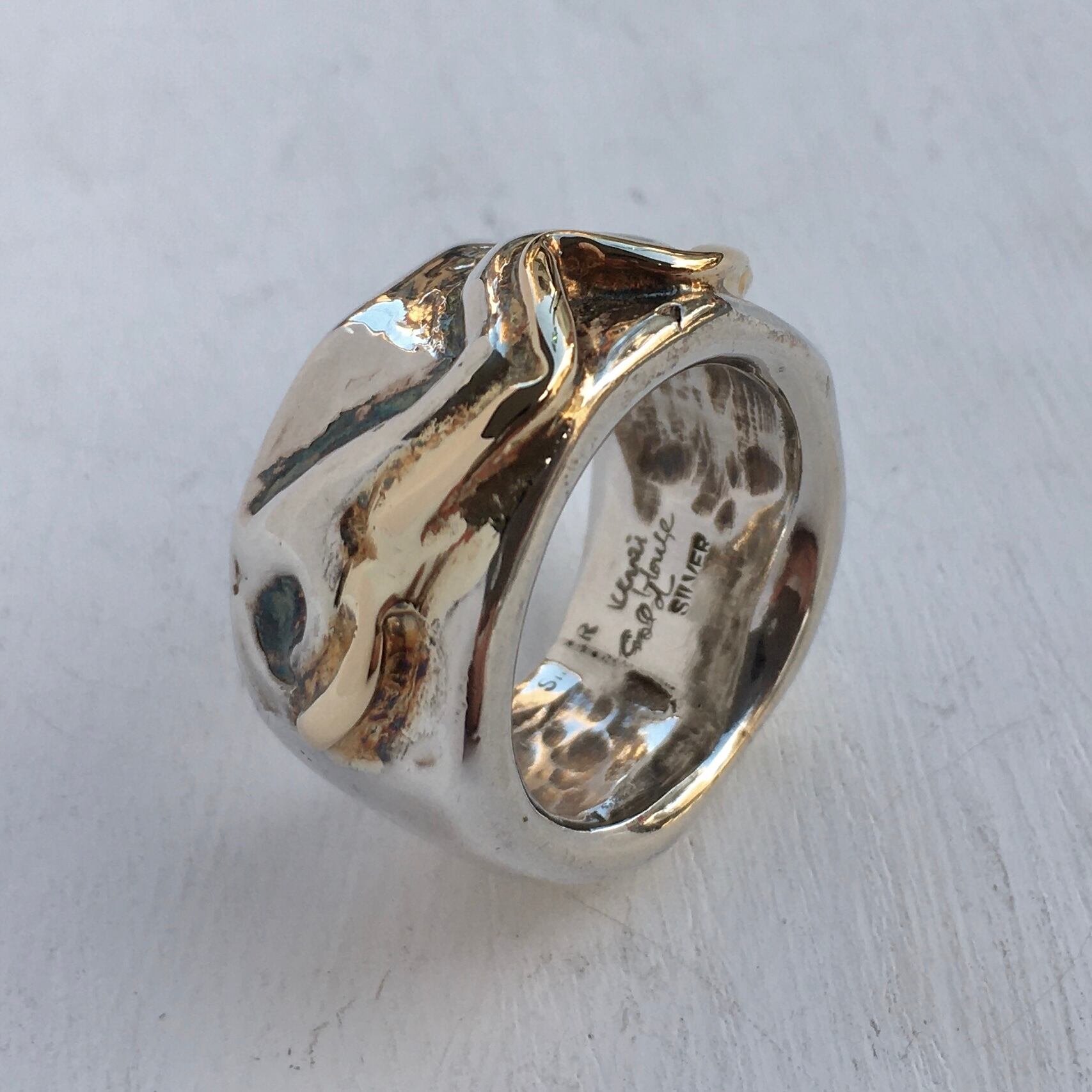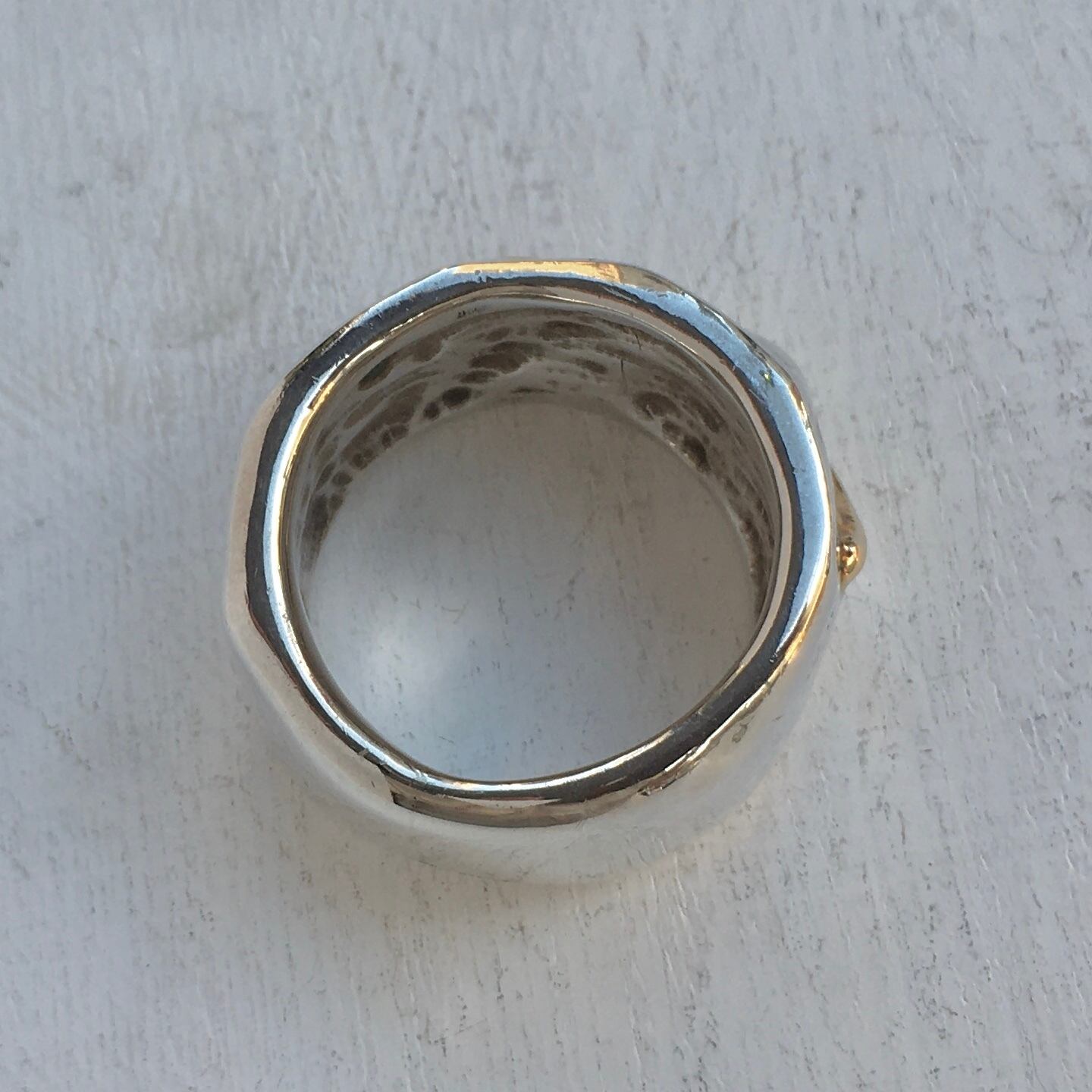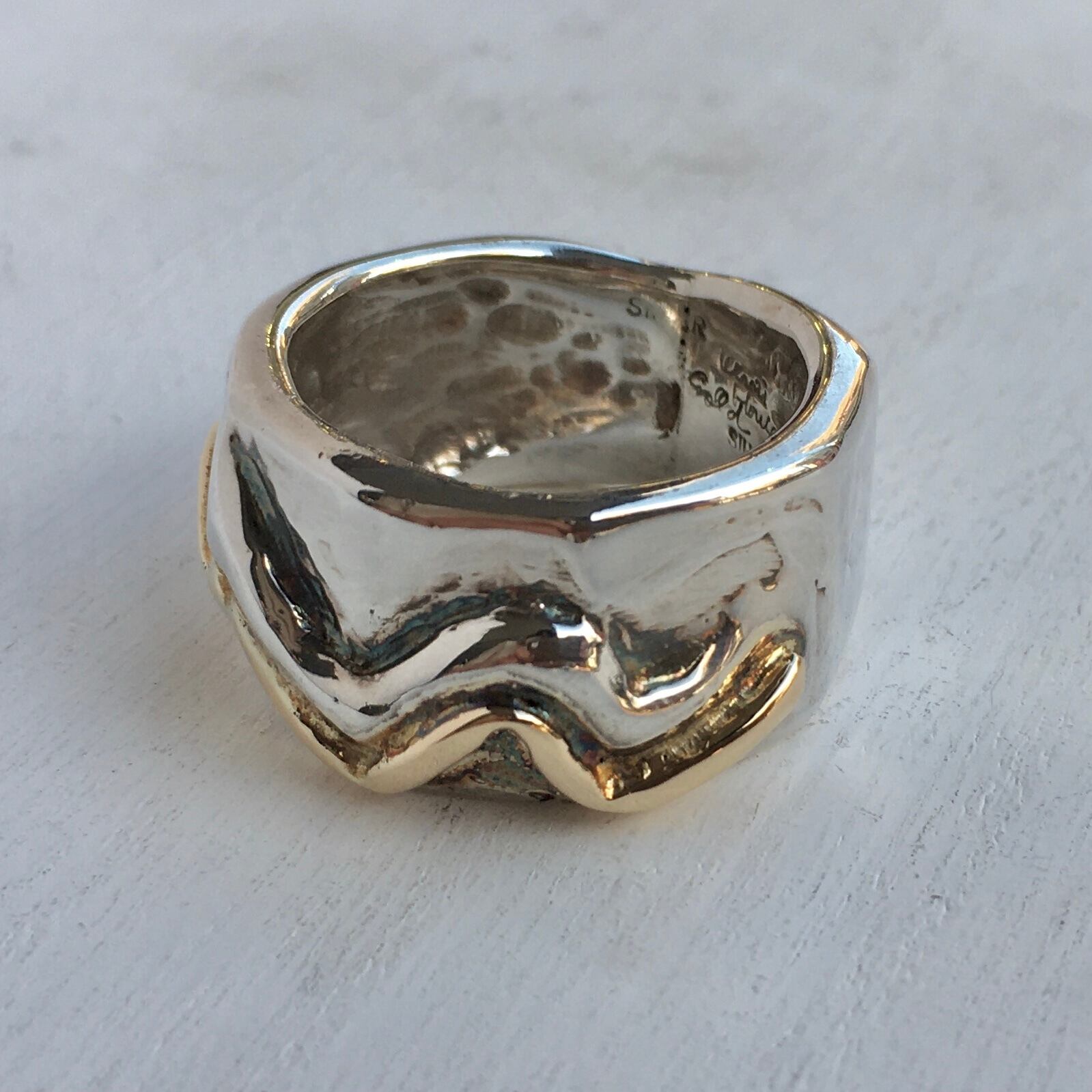 銀×金 幅広のリングにゴールドの波線 一点物リング