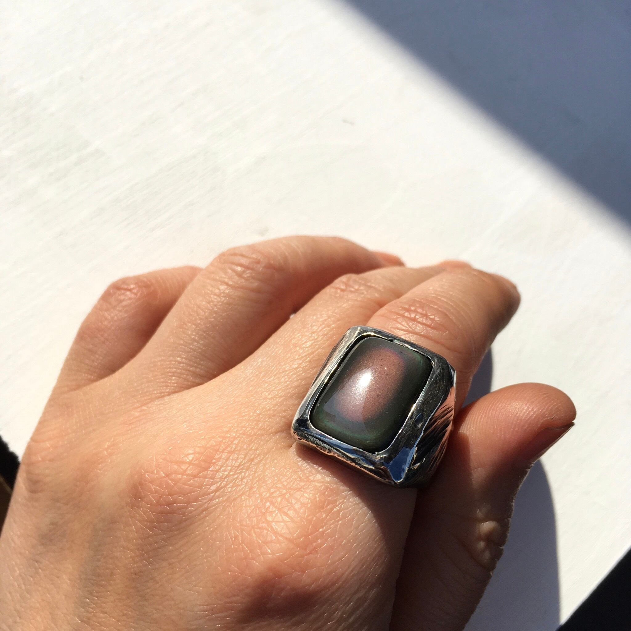 神秘的なレインボーオブシディアン 一点物シルバーリング