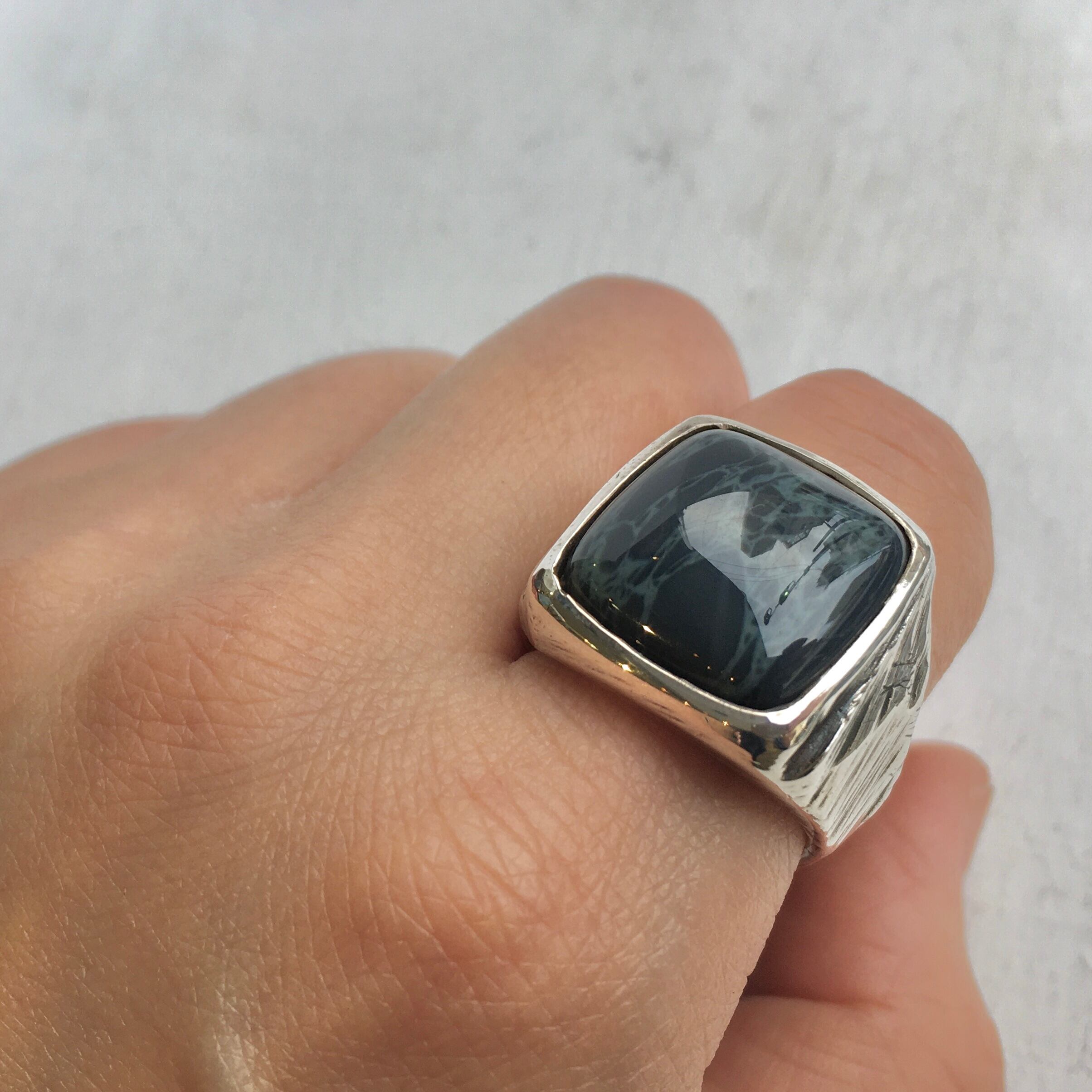 天然の模様が美しいスパイダーオプシディアンを使用したリングになります。