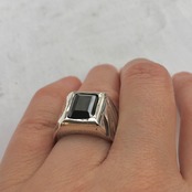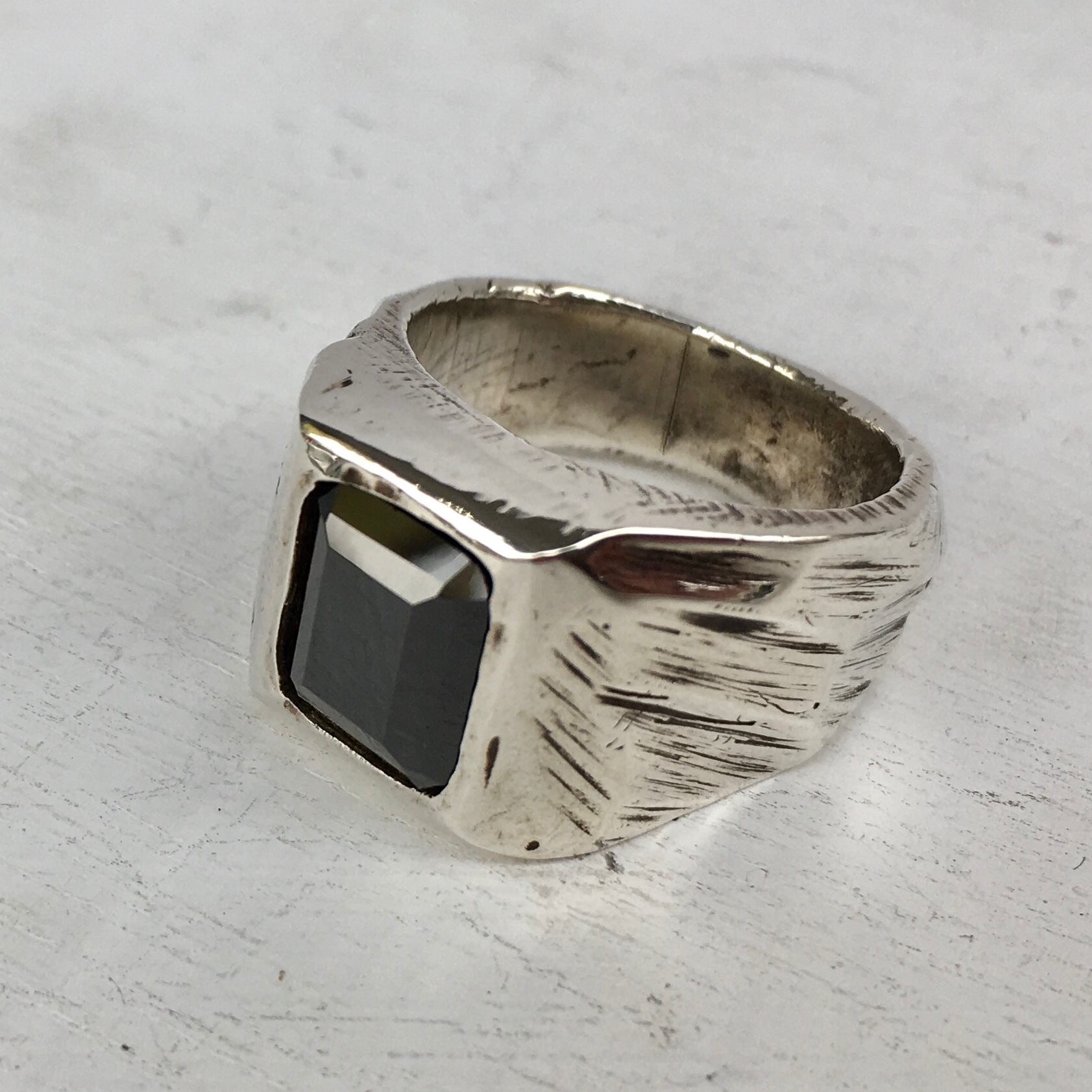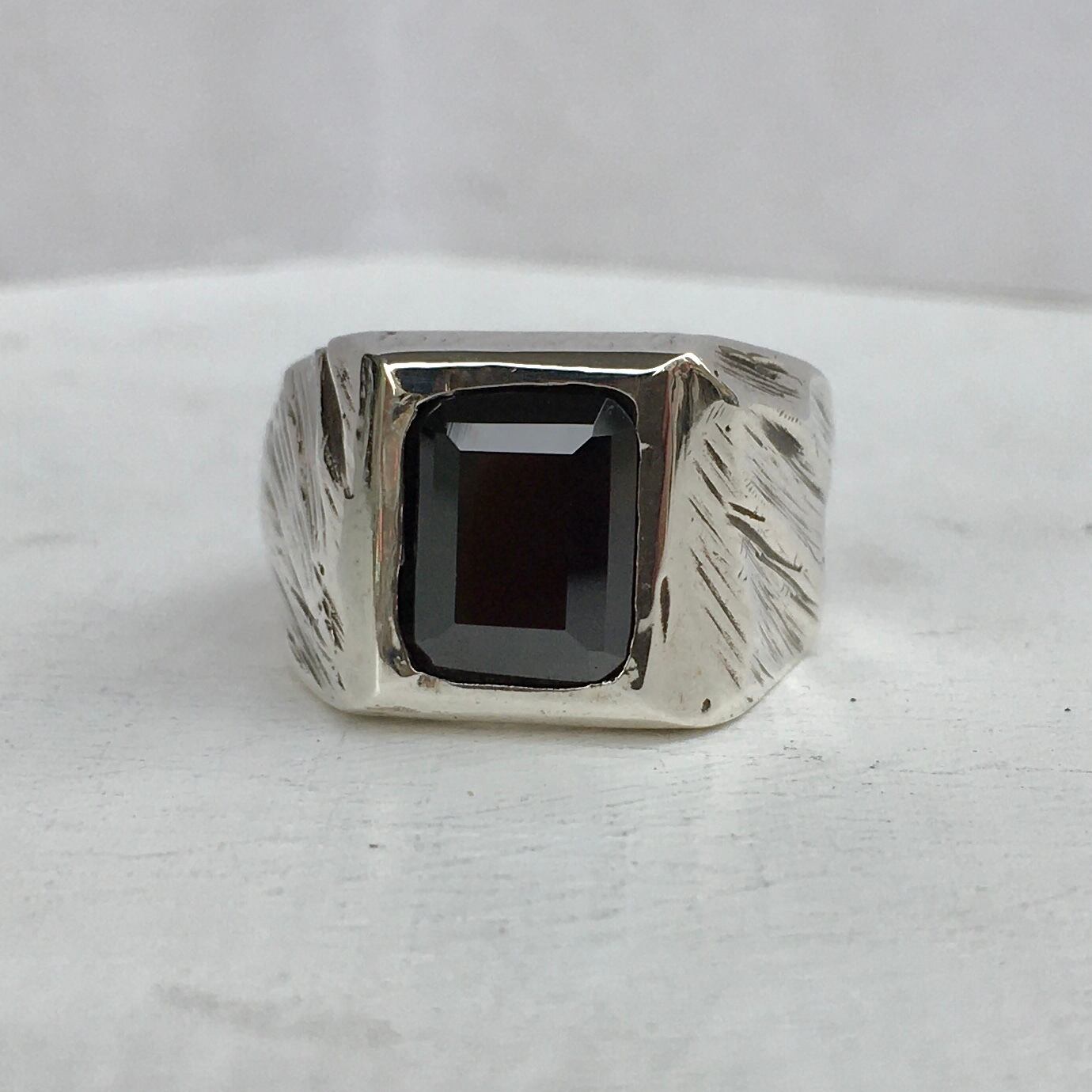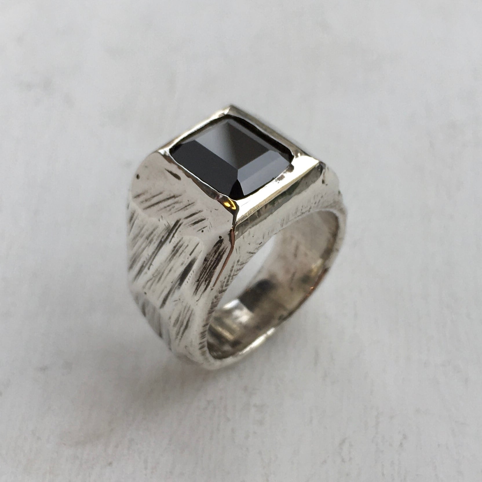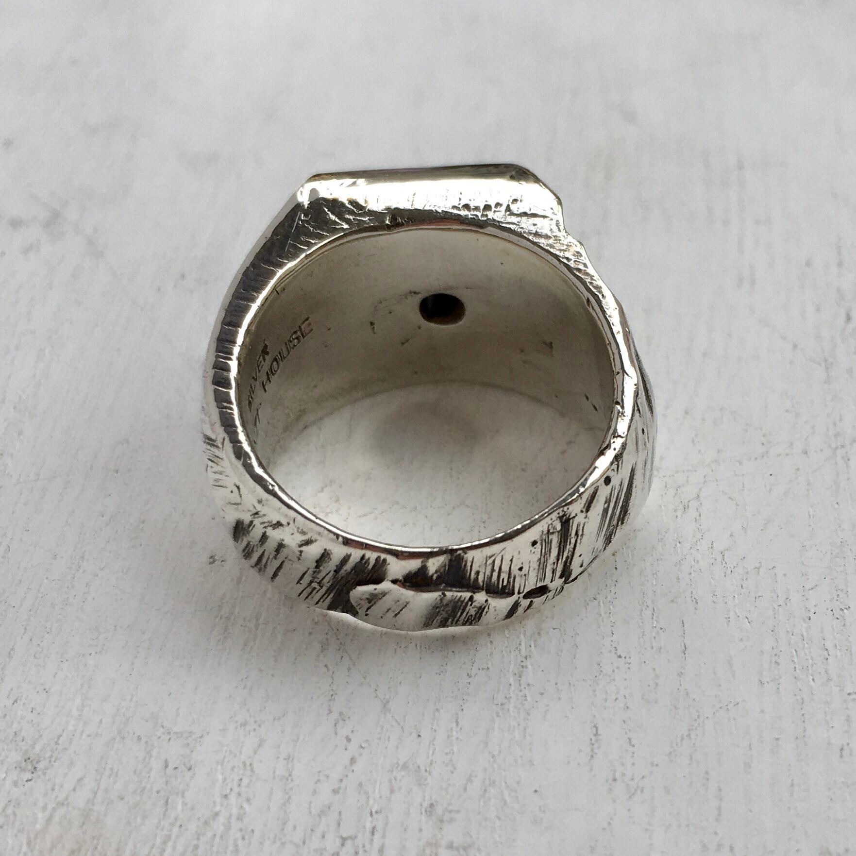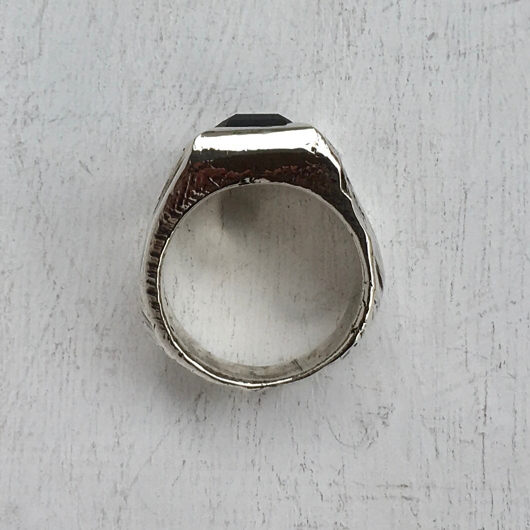 銀に黒い石の組み合わせは王道的で、それにラフな仕上がりのリング部分に