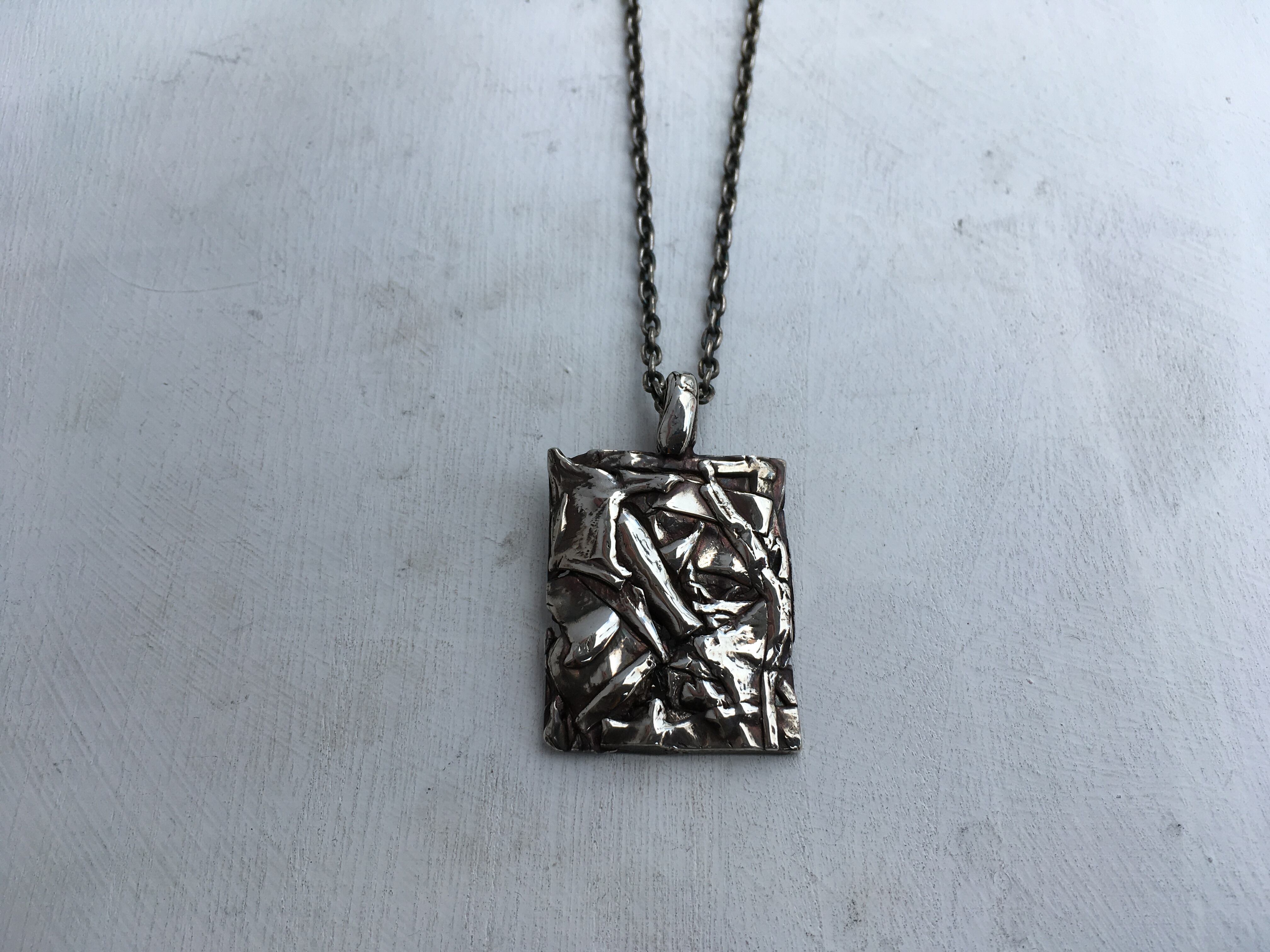 まるで額縁に飾られたモザイクアートもようなペンダントです。