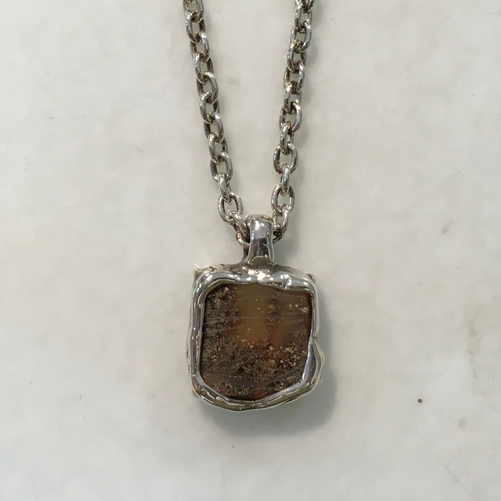 一風変わったシルバーとべっ甲の組み合わせのペンダントです。