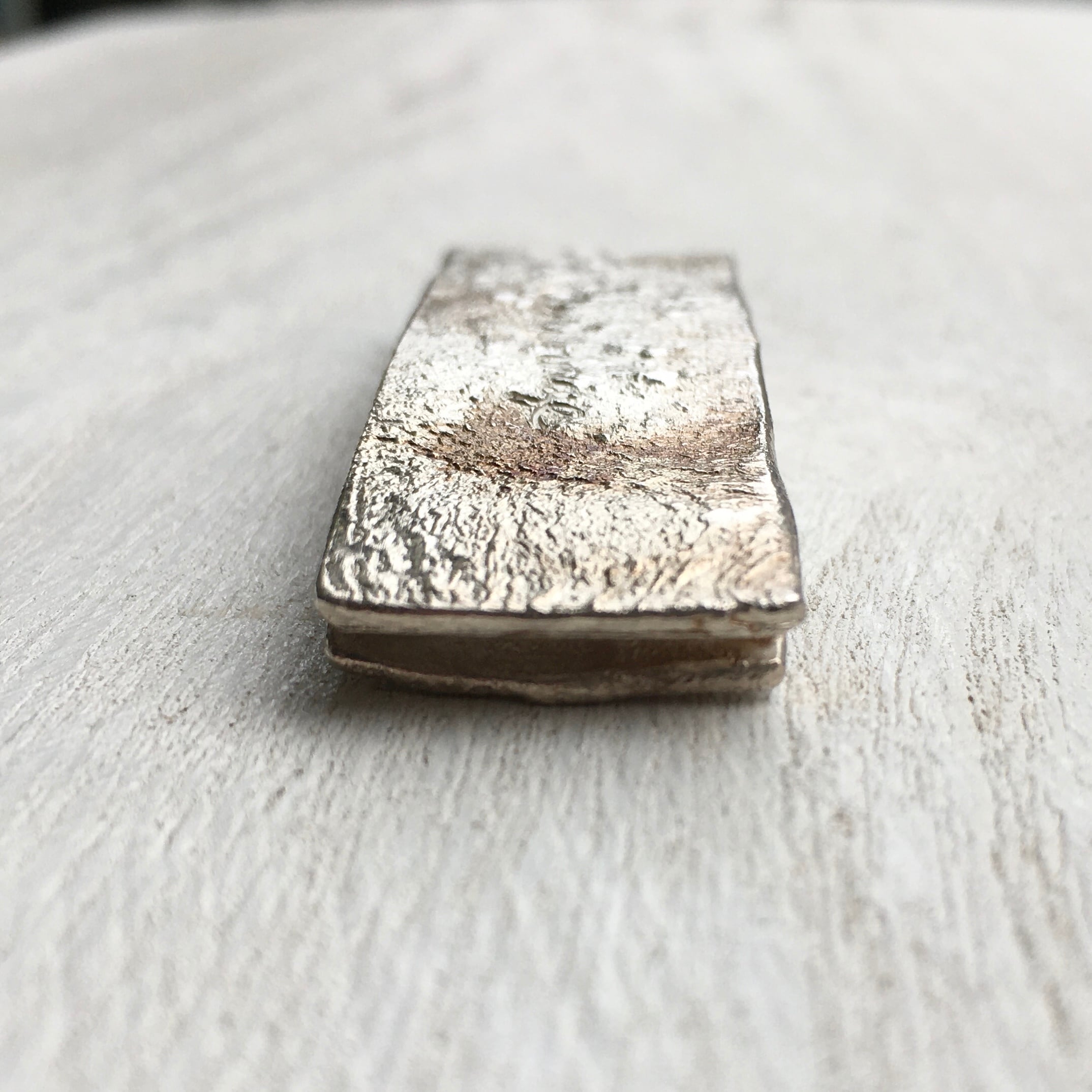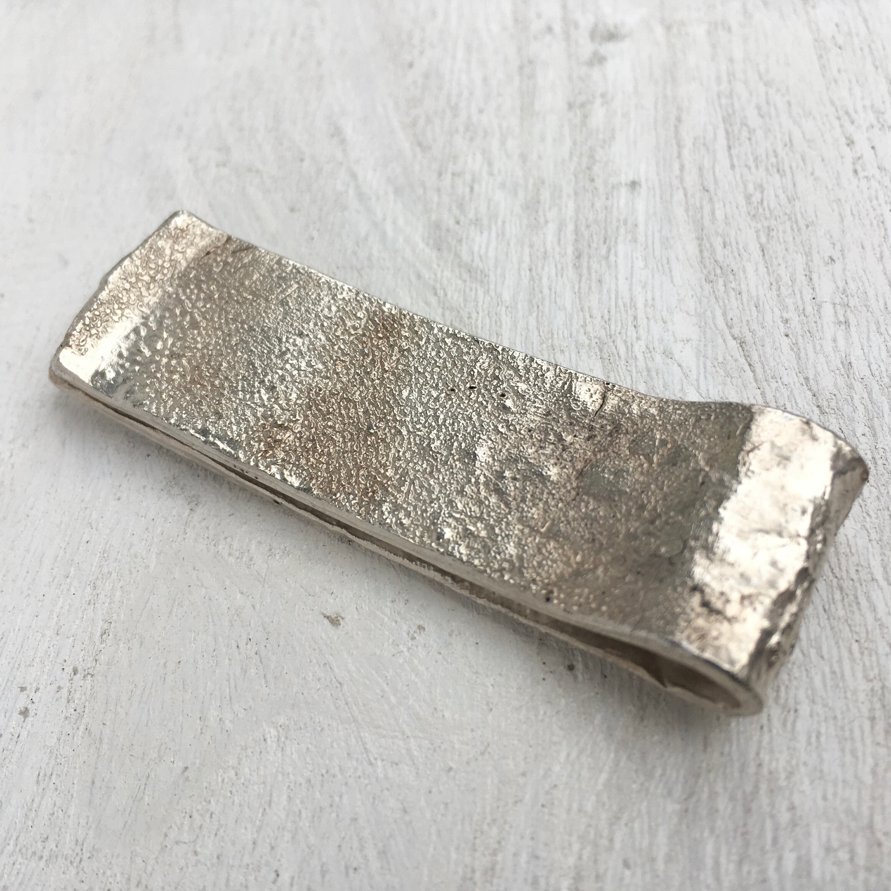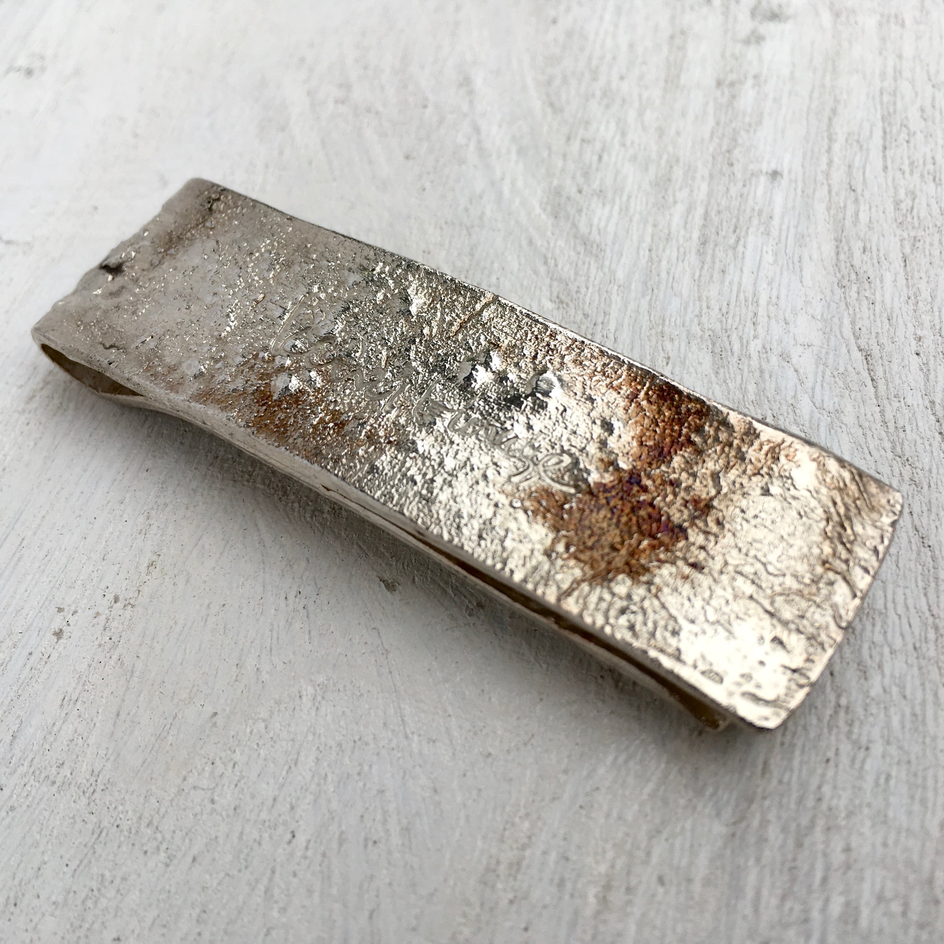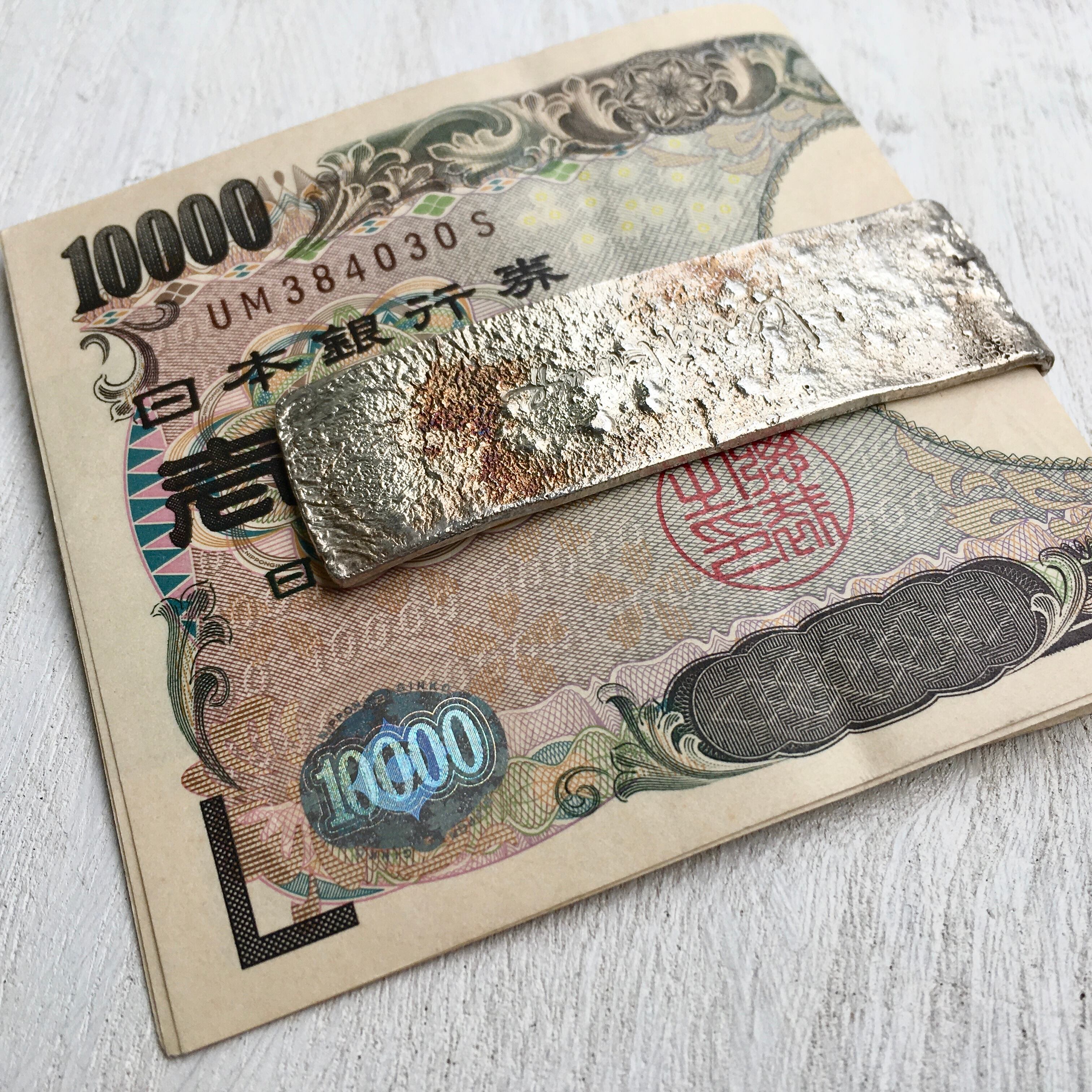 高温に曝された金属をそのままにマネークリップに仕上げました。