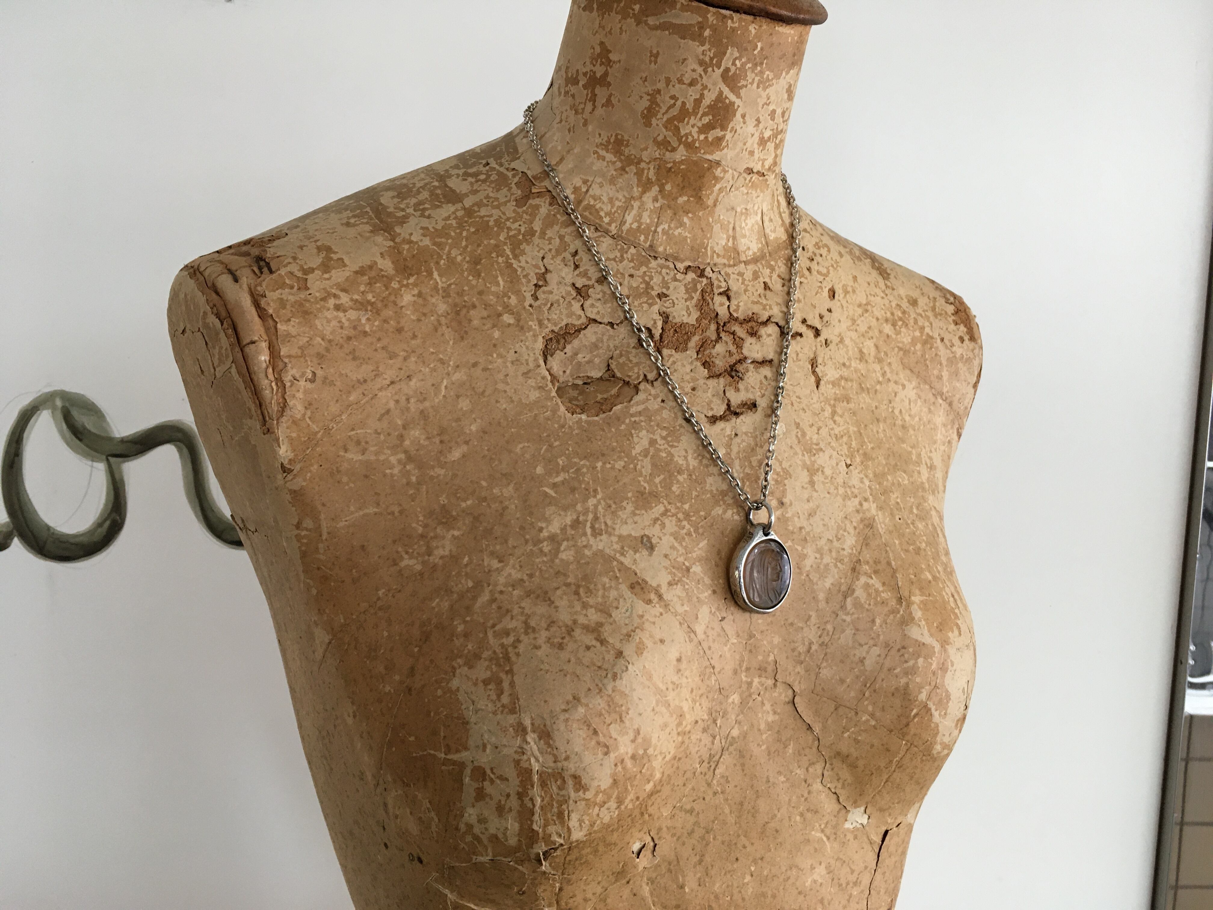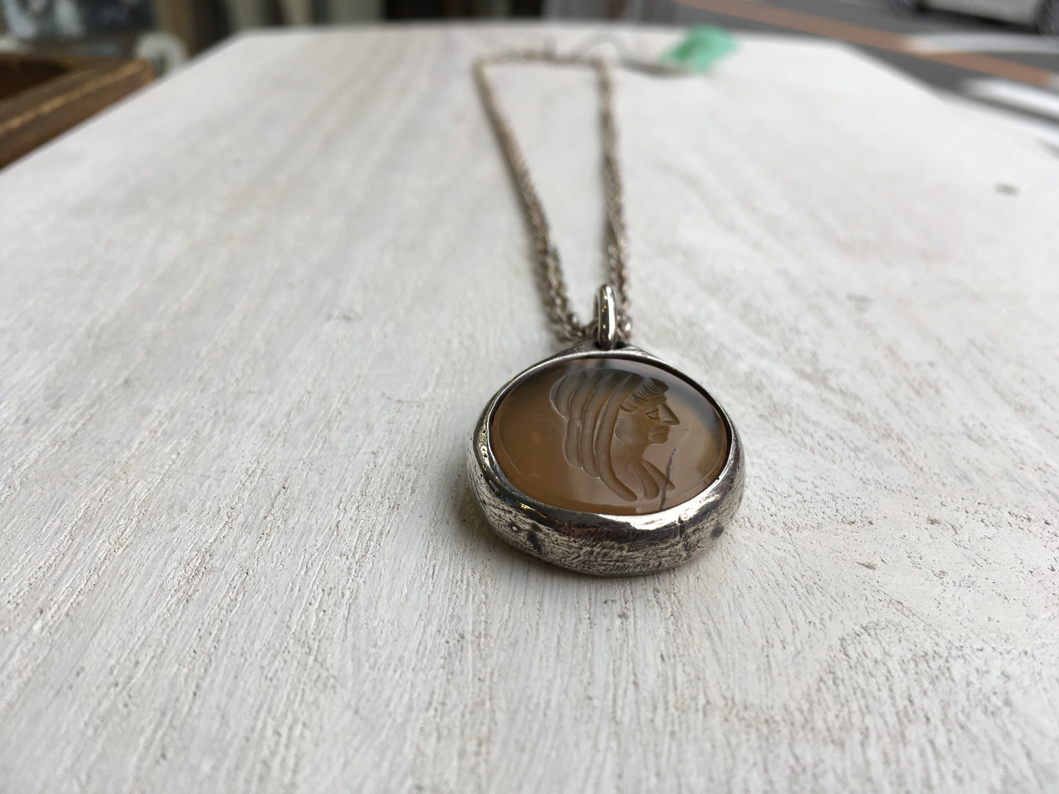 こちらは天然石に横顔を彫り込んだ、アンティークの印章を使用したペンダントになります。
