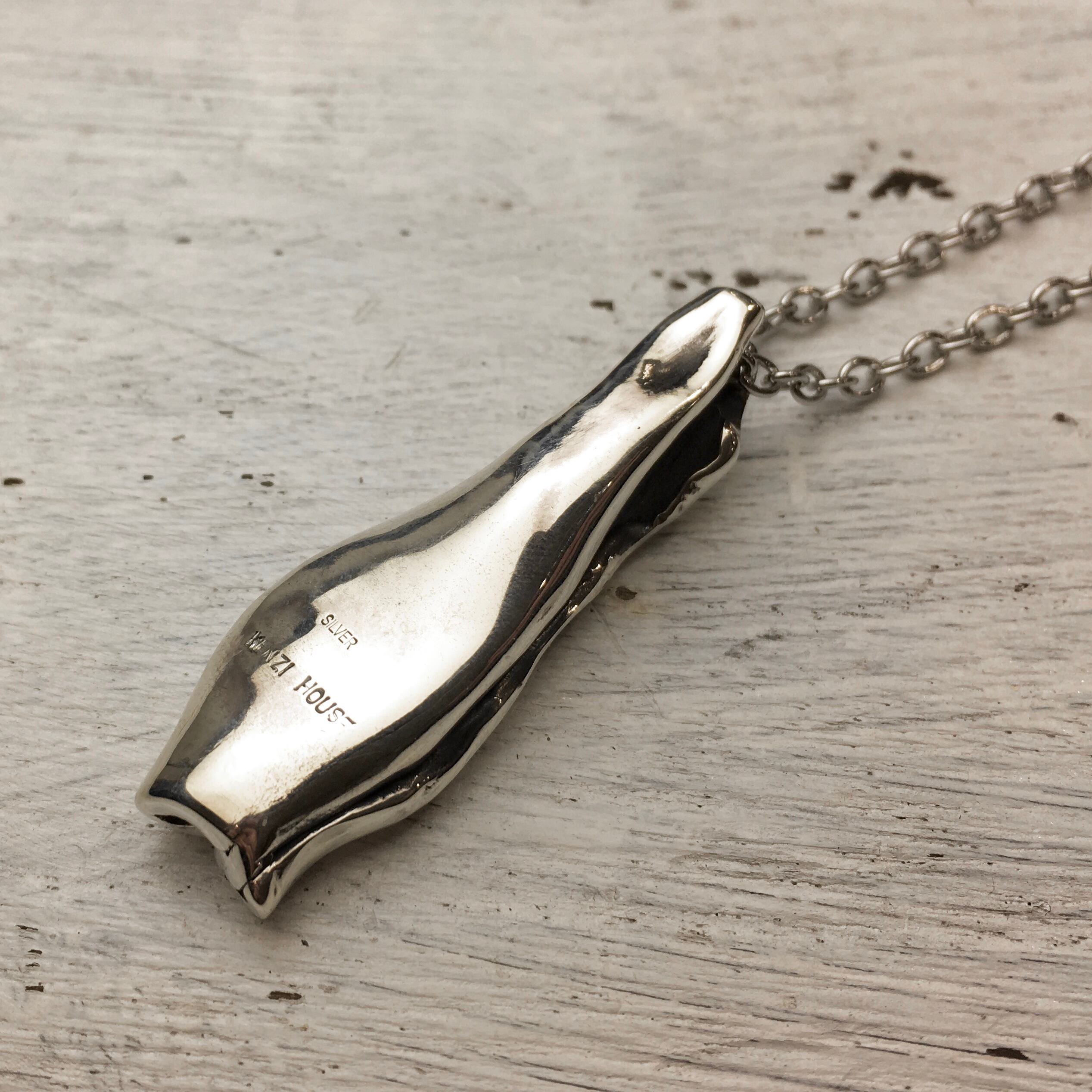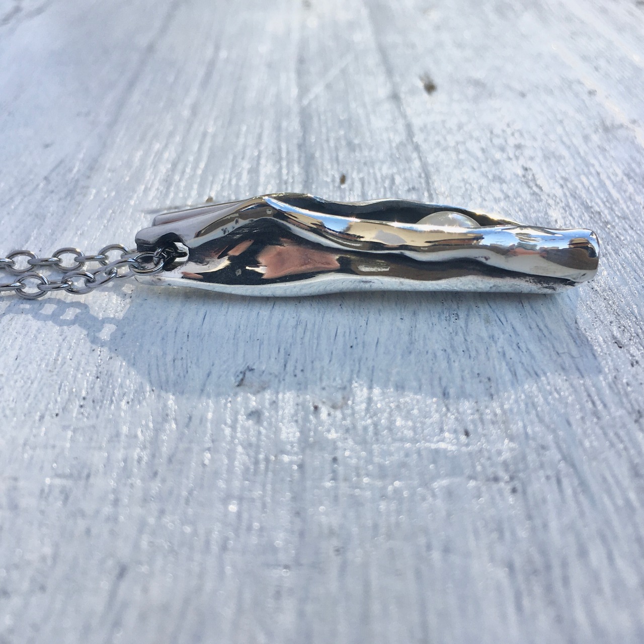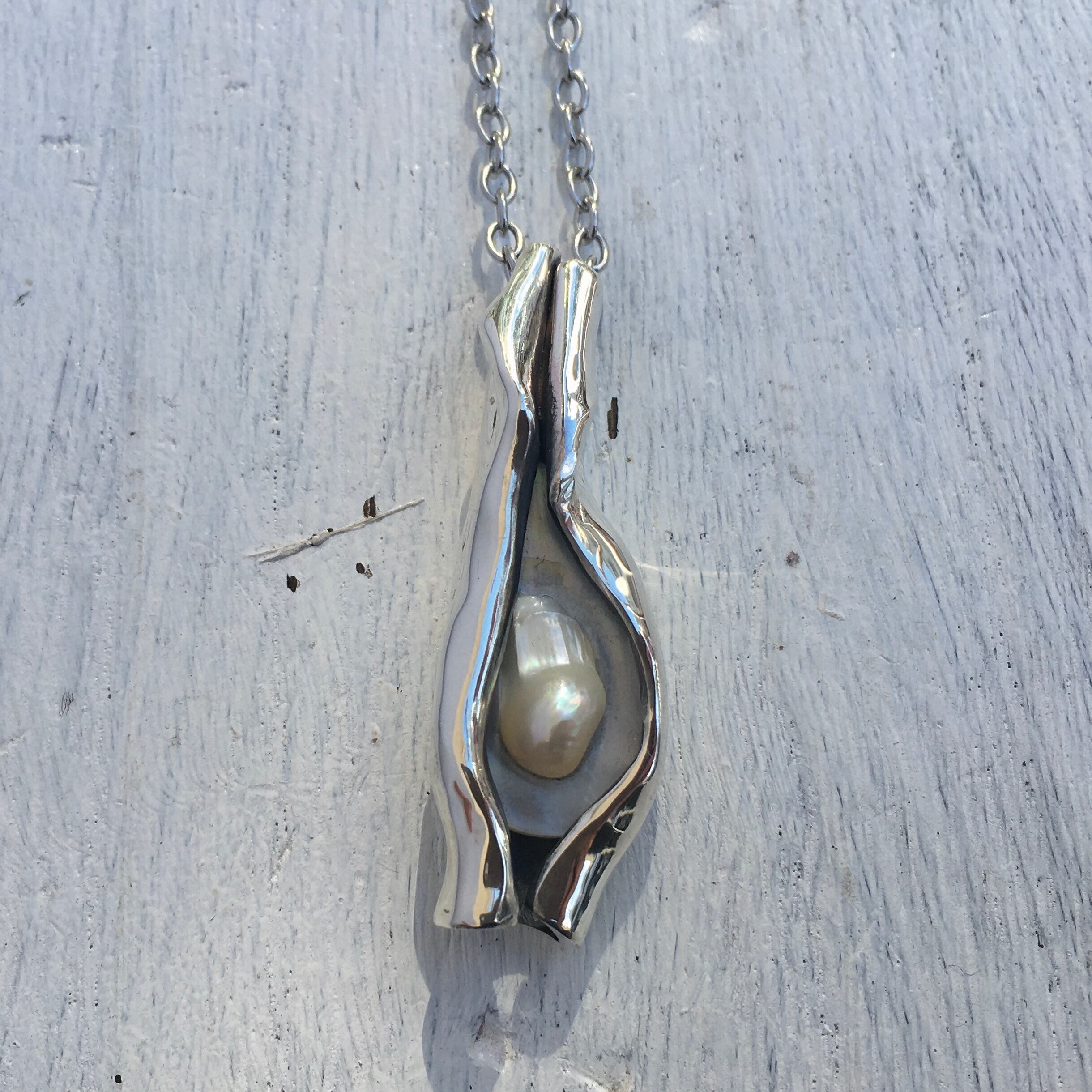 まるで銀からパールが生まれてるようなシーンのペンダントでどこか生命力を感じます。