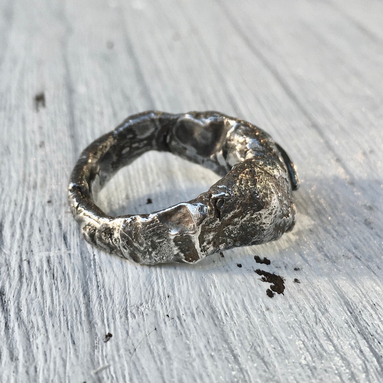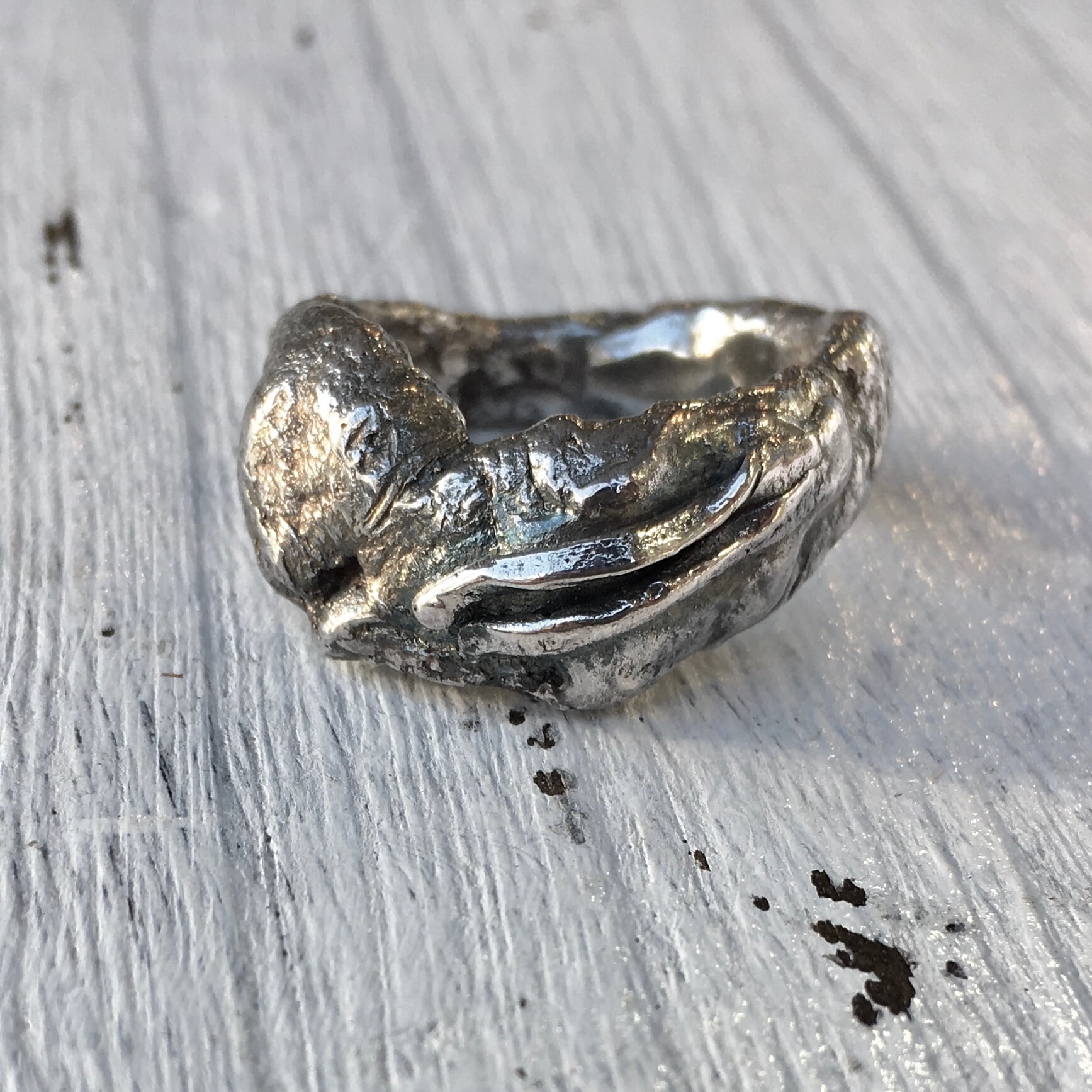 不思議な存在感と表面の独特なテクスチャが目を惹くリングです。