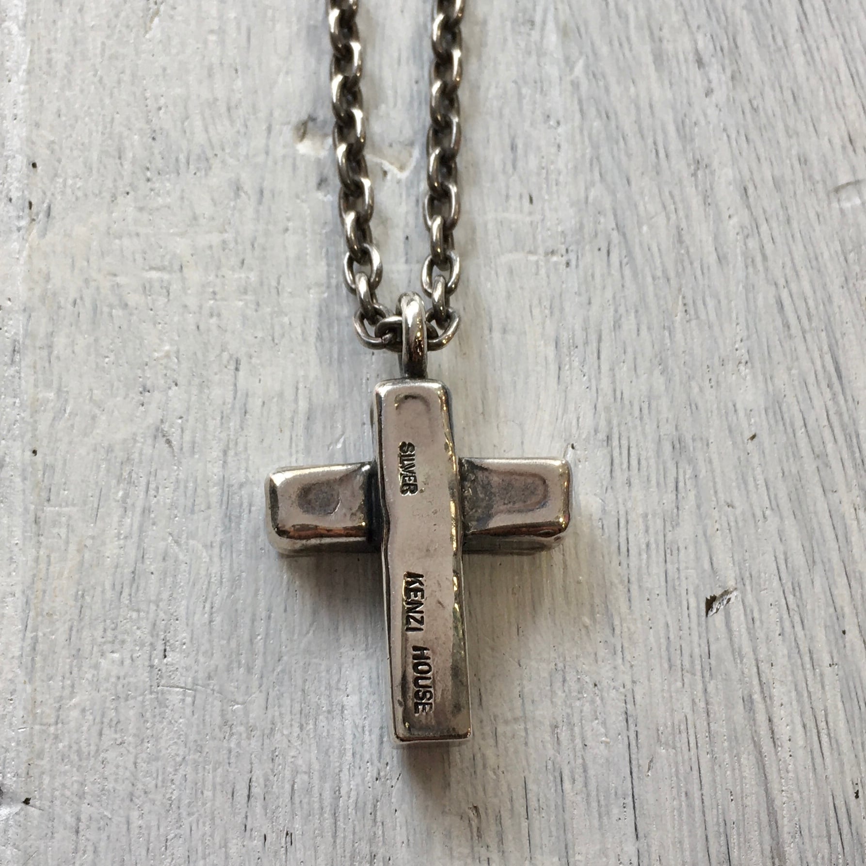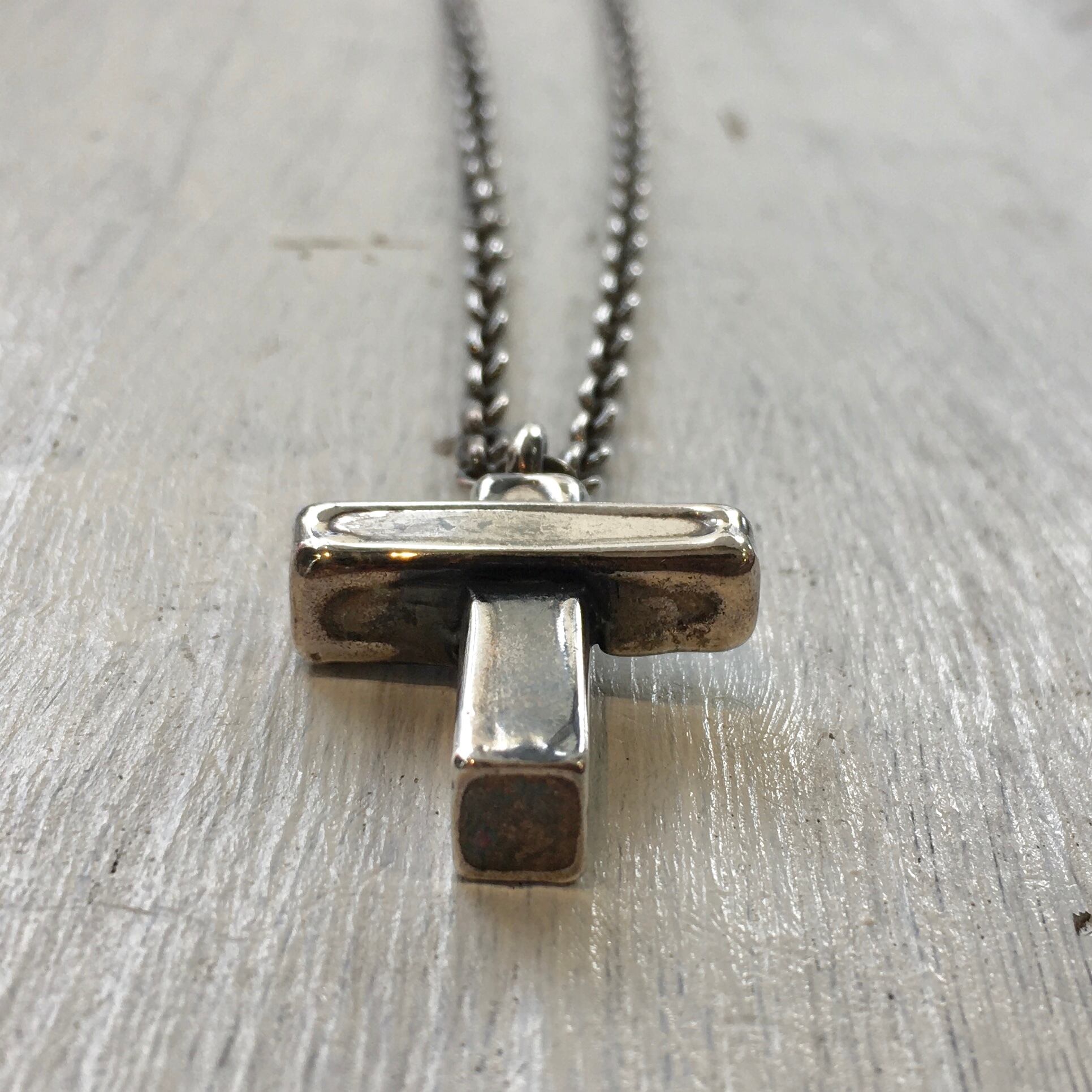 立体交差で組み合わさった十字架のペンダントになります。