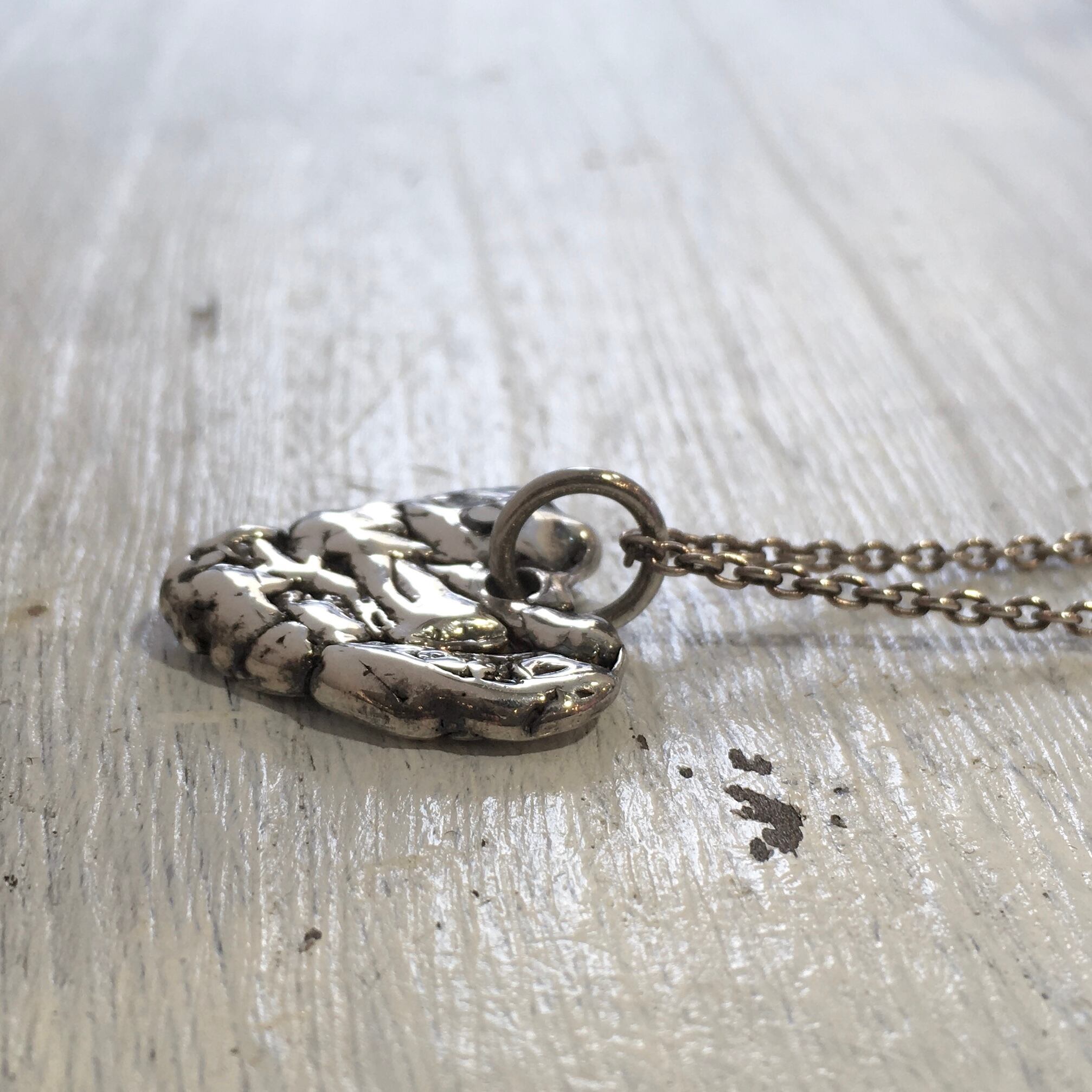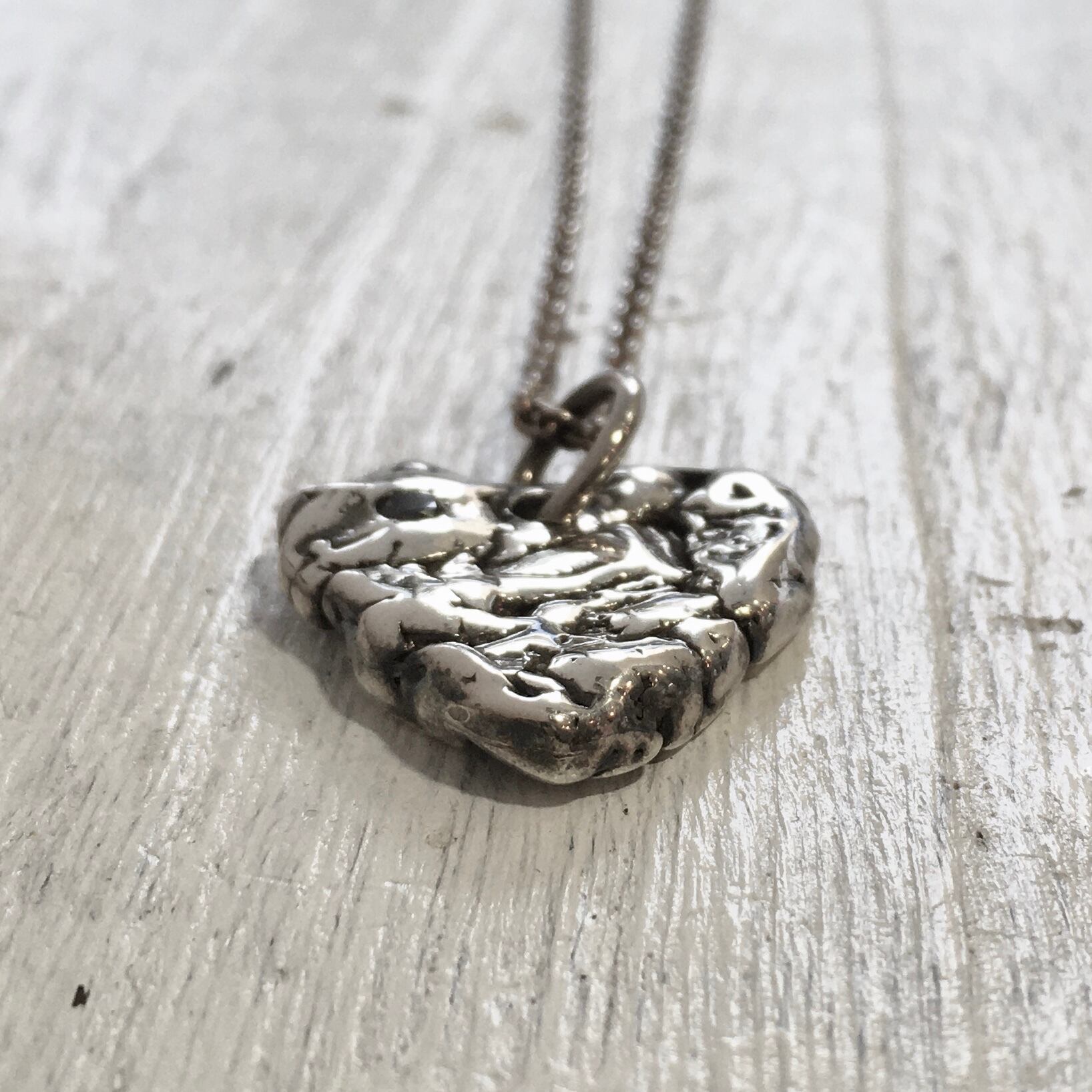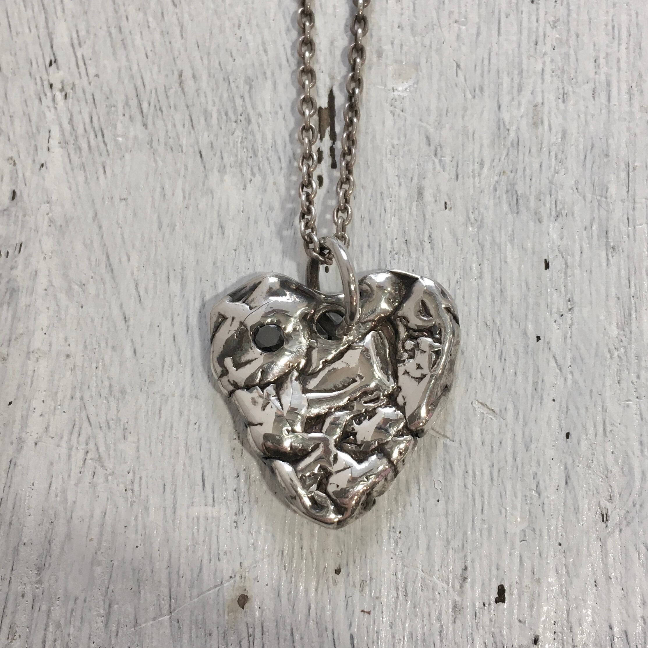 カッコいいハートのゴツゴツしたプレートの上に、スパイシーなブラックダイヤを埋め込んだ一点物ペンダントを作りました。